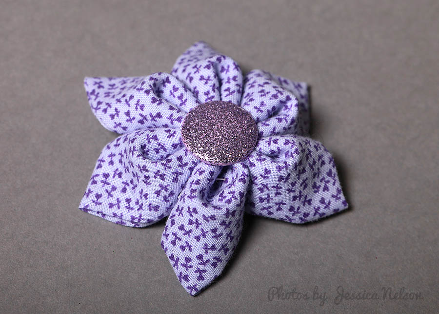 Purple Fabric Flowers are 80mm from tip to tip and have 6 fabric petals. With a glitter center adds bling and an alligator clip on the back makes sure that the flower lays flat on the head or head band.