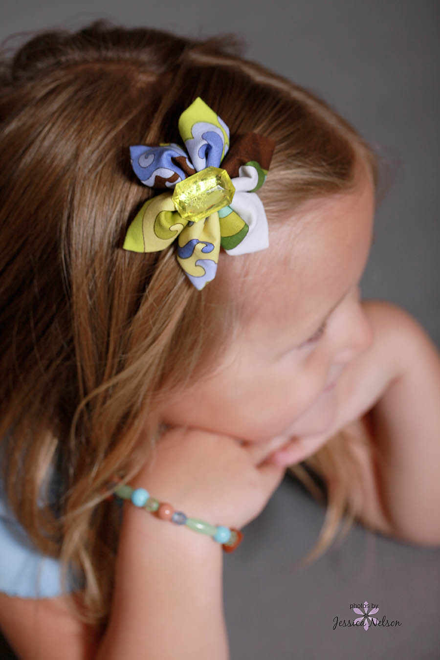 Fabric Flowers are 80mm from tip to tip and have 6 fabric petals. A rhinestone center adds bling and an alligator clip on the back makes sure that the flower lays flat on the head or head band.